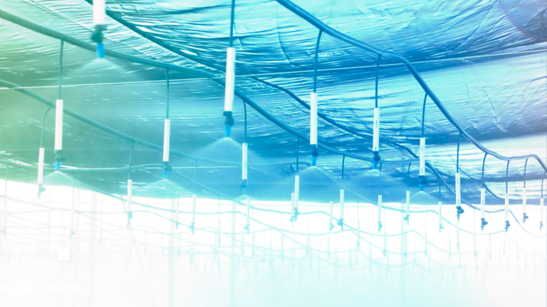 Nebulizador de alto desempenho para controle climático e pulverização em estufas e viveiros.